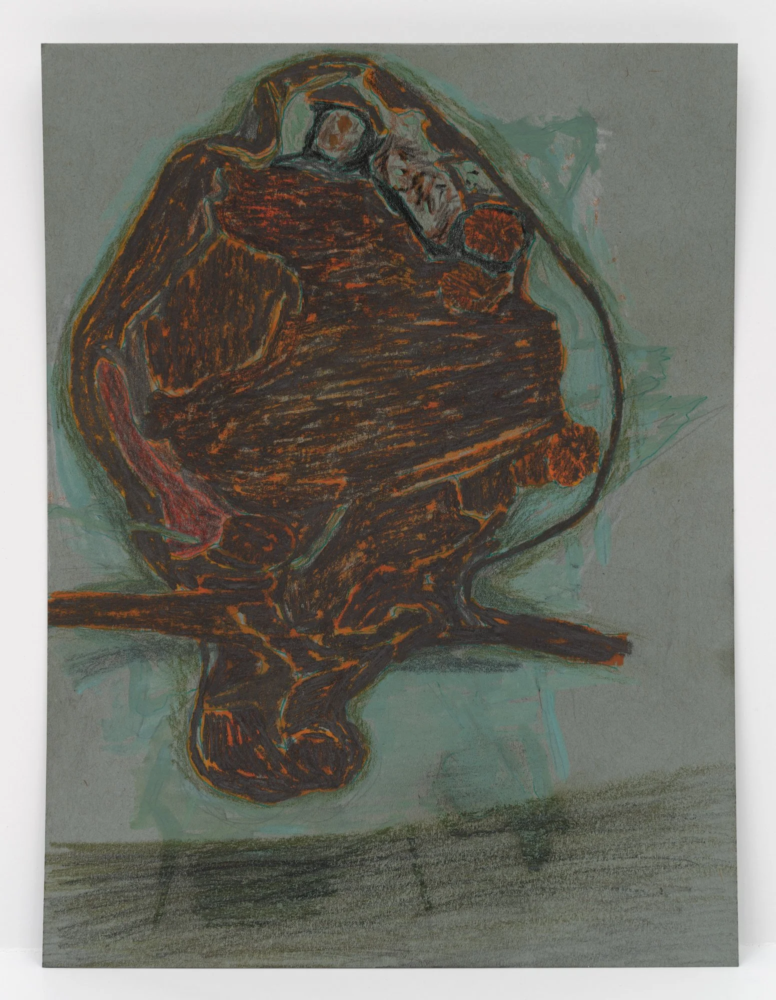charcoal, gouache, colored pencil, graphite, crayon, ink on paper, 12 x 9 inches